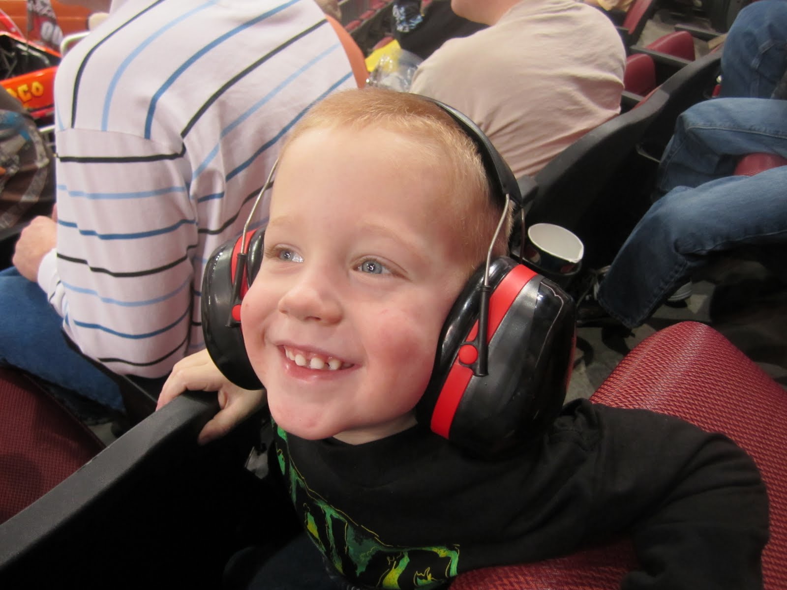 There is a reason why daddy is the hero at this house...not only is he the guy who roughhouses with them, takes them to work with him, puts them on tractors/combines, watches sports with them and so much more, but he made Isaac's (and Jorden's to a point) dream come true by taking him to the Monster Truck Jam. Jorden was excited but not nearly as much as his brother. Jereme said this was Isaac's face throughout most of the event...
